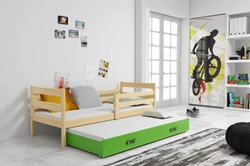 Łóżko młodzieżowe wysuwane ERYK 80X190 z szufladą, sosna/zielone