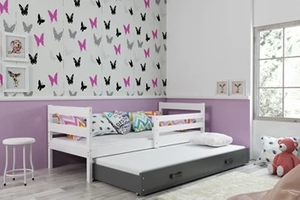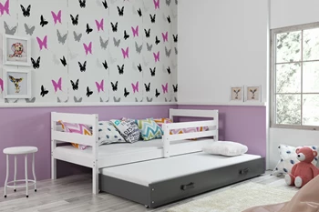 Łóżko młodzieżowe wysuwane ERYK 80X190 z szufladą, białe/grafitowe