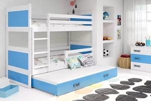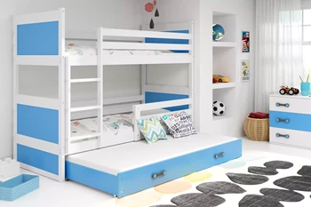Łóżko młodzieżowe trzyosobowe MAX 3 120X200 z szufladą, niebieskie
