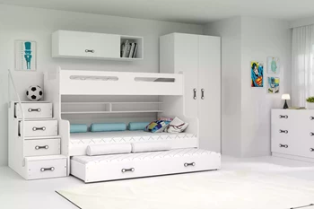 Łóżko młodzieżowe trzyosobowe MAX 3 120X200 z szufladą, białe