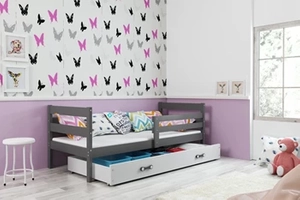 Łóżko młodzieżowe pojedyncze ERYK 80X190 z materacem i szufladą, grafitowe/białe