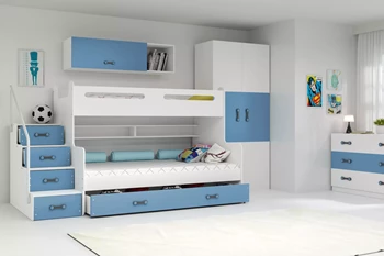 Łóżko młodzieżowe piętrowe MAX 3 120X200 z materacem i szufladą, niebieskie