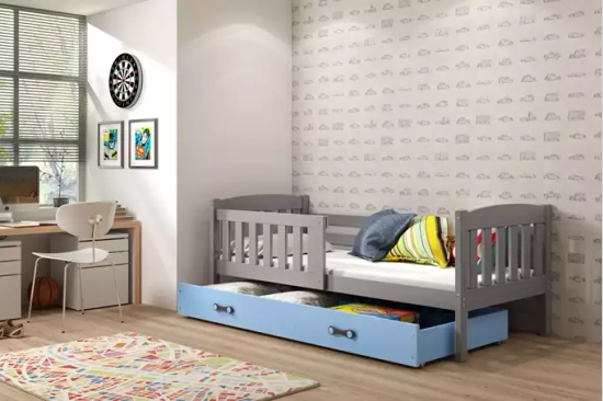 Łóżko młodzieżowe pojedyncze KUBUŚ 90X190 z szufladą, grafitowe/niebieskie