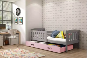 Łóżko młodzieżowe pojedyncze KUBUŚ 90X190 z szufladą, grafitowe/różowe