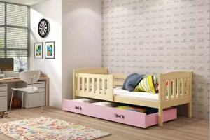 Łóżko młodzieżowe pojedyncze KUBUŚ 80X190 z szufladą, sosna/różowe