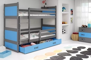 Łóżko dziecięce piętrowe RICO 80X160 z szufladą, grafitowe/niebieskie