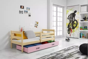 Pojedyncze łóżko młodzieżowe ERYK 90X190 z materacem i szufladą, sosna/różowe