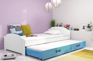 Łóżko młodzieżowe wysuwane LILI 90X200 z materacem i szufladą, białe/niebieskie