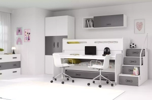 Łóżko młodzieżowe trzyosobowe MAX 1 80X200 z biurkiem, grafitowe
