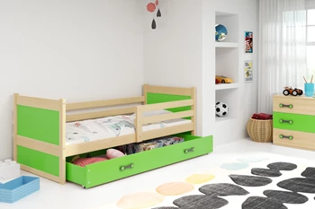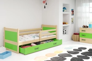 Łóżko młodzieżowe pojedyncze RICO 90X200 z materacem i szufladą, sosna/zielone