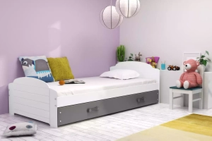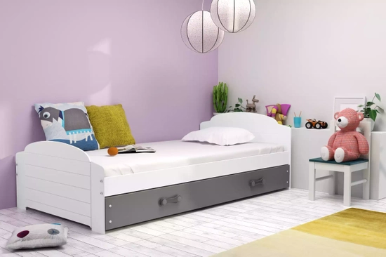 Łóżko młodzieżowe pojedyncze LILI 90X200 z materacem i szufladą, białe/grafitowe