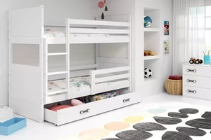 Łóżko młodzieżowe piętrowe RICO 90X200 z materacem i szufladą, białe