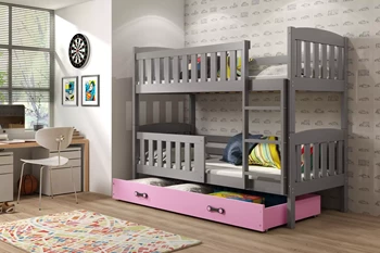 Łóżko młodzieżowe piętrowe KUBUŚ 90X200 z szufladą, białe/różowe