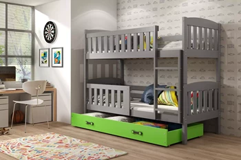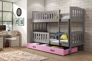 Łóżko młodzieżowe piętrowe KUBUŚ 90X200 z materacem, grafitowe