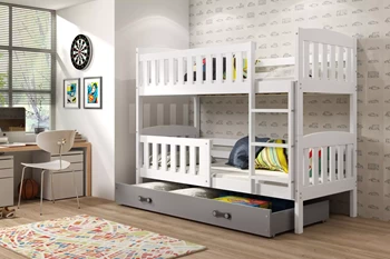 Łóżko młodzieżowe piętrowe KUBUŚ 90X190 z szufladą, białe/grafitowe