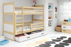Łóżko dziecięce piętrowe RICO 80X160 z materacem i szufladą, sosna/białe