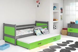 Łóżko młodzieżowe wysuwane RICO 90X200 z materacem i szufladą, grafitowe/zielone