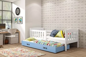 Łóżko młodzieżowe wysuwane DAWID 90X200 z materacem i szufladą, białe/niebieskie