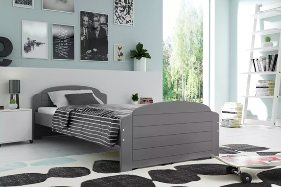 Łóżko młodzieżowe pojedyncze KUBUŚ 90X200 z materacem, grafitowe