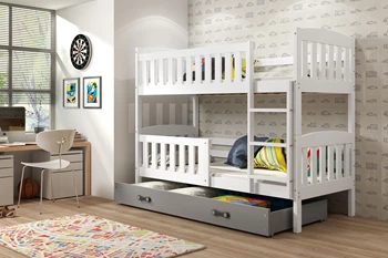Łóżko młodzieżowe piętrowe KUBUŚ 80X190 z szufladą, sosna/białe