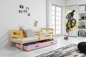 Łóżko młodzieżowe pojedyncze ERYK 80X190 z materacem i szufladą, sosna/różowe