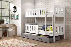 Łóżko młodzieżowe piętrowe KUBUŚ 90X190 z szufladą, białe/grafitowe