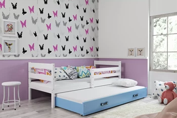 Łóżko młodzieżowe wysuwane DAWID 90X200 z materacem i szufladą, sosna/niebieskie