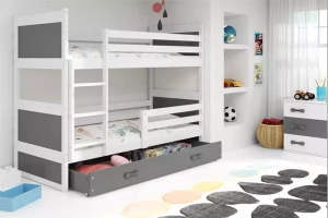 Łóżko młodzieżowe piętrowe RICO 90X200 z szufladą, białe/grafitowe