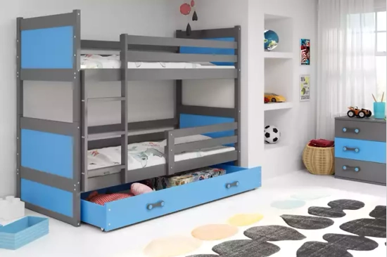 Łóżko młodzieżowe piętrowe MAX 3 120X200 z szufladą, niebieskie