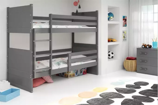 Łóżko młodzieżowe piętrowe RICO 90X190 z materacem, grafitowe