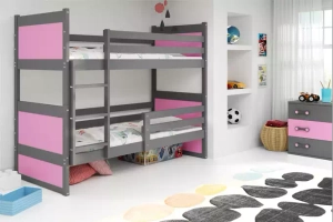 Łóżko młodzieżowe piętrowe RICO 90X190, grafitowe/różowe