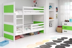 Łóżko młodzieżowe piętrowe RICO 90X200, białe/zielone