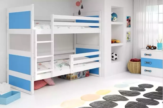 Łóżko młodzieżowe piętrowe RICO 90X190, białe/niebieskie