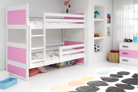 Łóżko młodzieżowe piętrowe RICO 90X190, białe/różowe