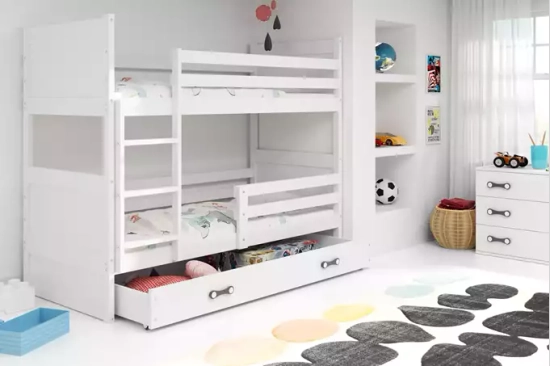 Łóżko młodzieżowe piętrowe RICO 90X190 z szufladą, białe