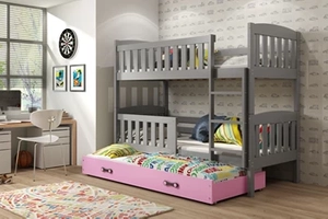 Łóżko młodzieżowe trzyosobowe KUBUŚ 90X190 z szufladą, grafitowe/różowe