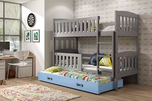 Łóżko młodzieżowe trzyosobowe KUBUŚ 90X190 z szufladą, grafitowe/niebieskie