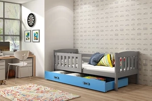 Łóżko dziecięce pojedyncze KUBUŚ 80X160 z materacem i szufladą, sosna/grafitowe