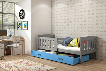 Łóżko dziecięce pojedyncze KUBUŚ 80X160 z materacem i szufladą, sosna/niebieskie
