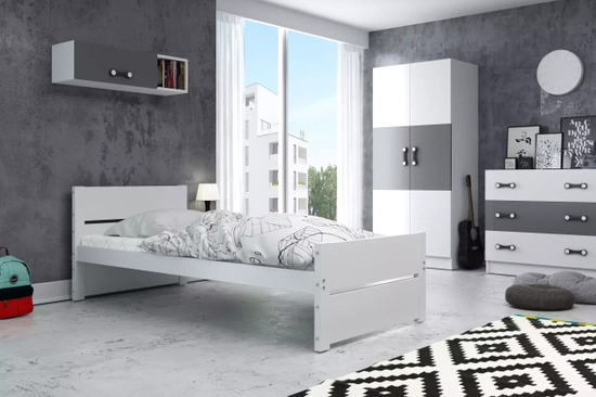 Łóżko młodzieżowe pojedyncze BARTEK 90X200 z materacem i szufladą, białe
