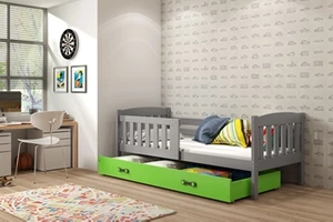 Łóżko młodzieżowe pojedyncze KUBUŚ 90X200 z materacem i szufladą, grafitowe/zielone