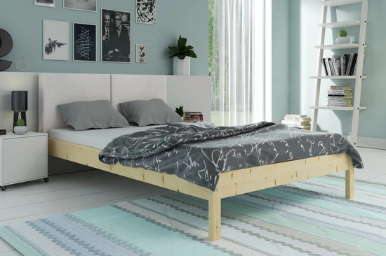 Łóżko z tapicerowanym zagłówkiem 160X200 - Galaxy naturalne drewno/popiel z materacem