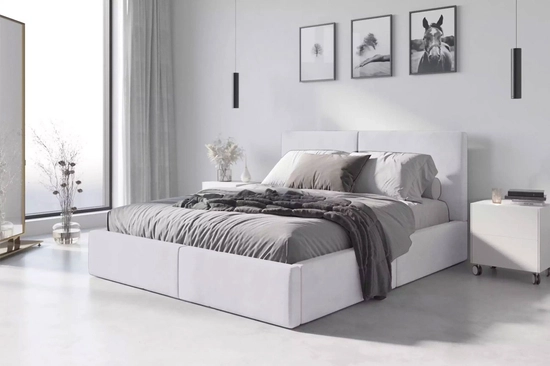 Łóżko sypialniane tapicerowane HILTON 160X200 z pojemnikiem, białe