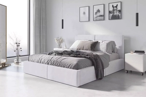 Tapicerowane wykończenie nadaje łóżku miękkości i przytulności, a uniwersalny kolor tkaniny sprawi, że z łatwością dopasuje się ono do niemalże każdego stylu. Biel podkreśla czystość formy i sprawia, że mebel prezentuje się wyjątkowo elegancko przez wiele lat. Wykorzystywane przez nas tkaniny obiciowe cechują się wysoką odpornością i będą doskonałym wyborem dla osób poszukujących wygodnego i ponadczasowego mebla do sypialni! Zapraszamy do zapoznania się z naszą ofertą!
