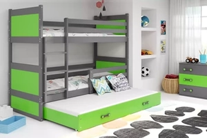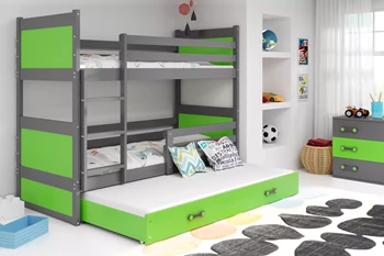 Łóżko młodzieżowe trzyosobowe RICO 90X200 z szufladą, grafitowe/zielone