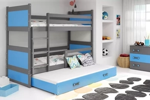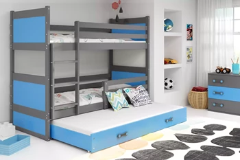 Łóżko młodzieżowe trzyosobowe RICO 90X200 z szufladą, grafitowe/niebieskie