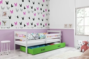 Łóżko młodzieżowe pojedyncze ERYK 80X190 z materacem i szufladą, białe/zielone