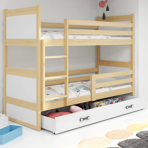 Łóżko dziecięce piętrowe RICO 80X160 z materacem i szufladą, sosna/białe