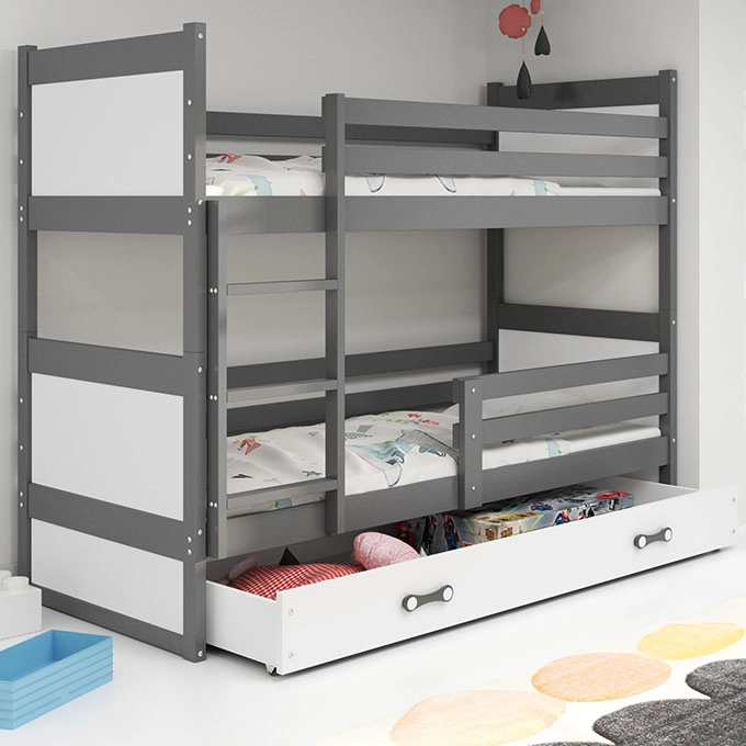 Łóżko dziecięce piętrowe RICO 80X160 z szufladą, grafitowe/białe