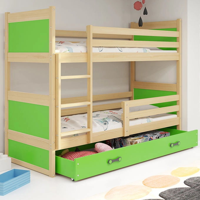 Łóżko dziecięce piętrowe RICO 80X160 z szufladą, sosna/zielone
